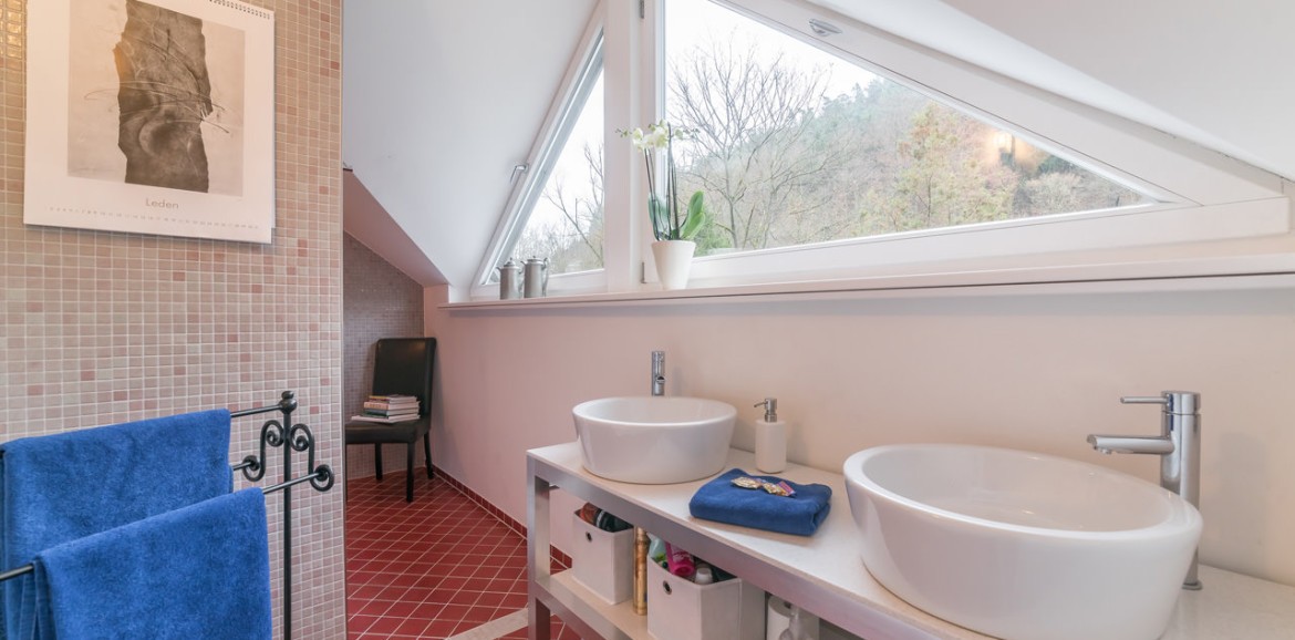 Das Apartment befindet sich im gemütlichen Dachgeschoss (links) des Hauptgebäudes im Apartmenthaus Saxonia in Bad Schandau. Es ist der ideale Rückzugsort für Familien oder Freunde, die gemeinsam reisen, aber dennoch Wert auf Privatsphäre legen – dank zwei separater Schlafzimmer.